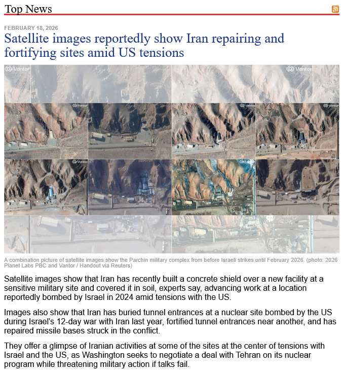 (5) Koenig International News ~ (February 18, 2026) “Satellite Images, Iran Repairing, Fortifying Sites” [see above image message] {breaking} Koenig International News