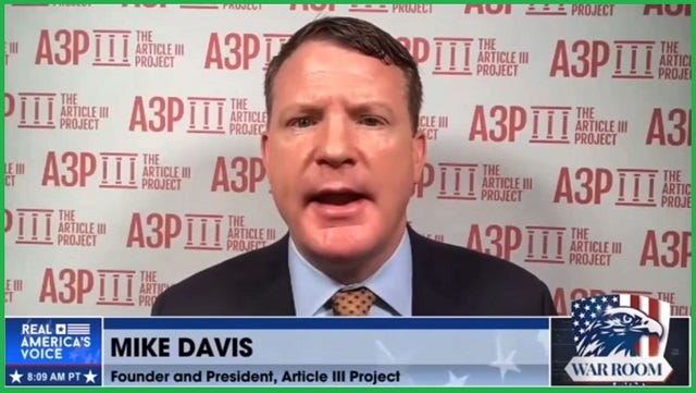 (5) War Room & Stephen K. Bannon ~ (April 15, 2024) Special Constitutional Expert MIKE DAVIS [see above image] warns “Deep State has turned the US Constitution into a ‘SWORD’ to cut down their enemies. The Lawfare against Trump is a real criminal conspiracy against the American people. The Rubicon has been crossed in America by the Deep State & Democrats” ? War Room