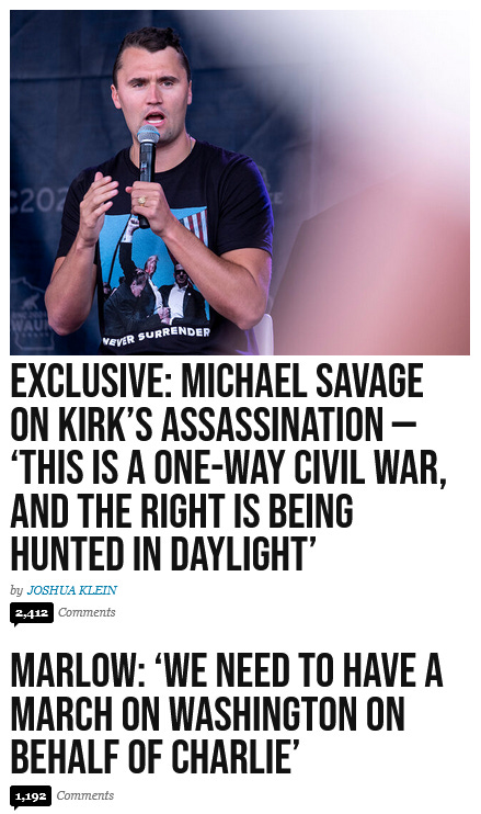 (9) Breitbart News Breaking ~ (September 13, 2025) Michael Savage “This Is One Way CIVIL WAR” [see above image message] {breaking} Breitbart News
