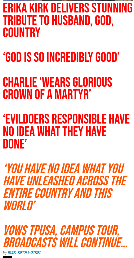 (3) Breitbart News Breaking ~ (September 13, 2025) Wife of Charlie Kirk, Erika Kirk gives tribute to husband, after assassination {breaking} [see above image message] warns Evildoers … Breitbart News